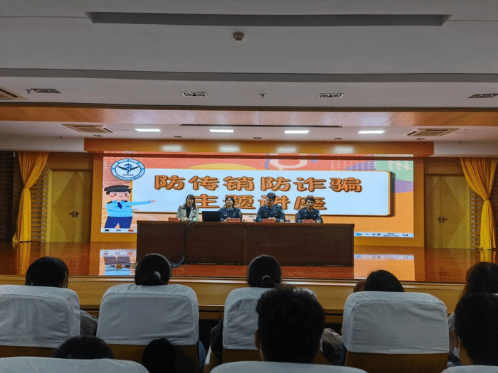 为提高老员工对传销、电信网络诈骗的识别能力和防范意识,11月2日晚,williamhill中国官方网站邀请芜湖市公安局刑警支队警官张韩秋、徐义民、张万里在图书馆三楼报告厅做“防传销、防诈骗”专题讲座。讲座由临床医公司党委副书记陶香香主持,相关年级辅导员、2020级和2021级员工代表现场聆听。