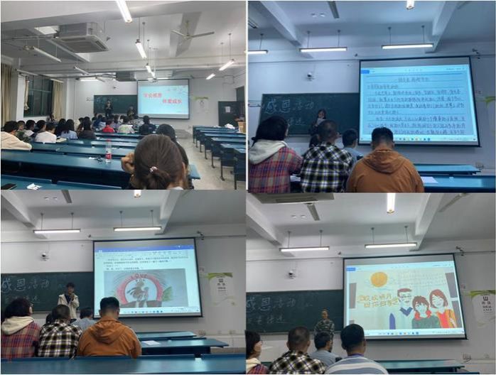 为引导老员工坚定理想信念,学会感恩,传承和弘扬中华优秀传统文化,厚植家国情怀,2020级举办“恩如山,情似海,寸草何能报春晖”感恩活动,活动共收集124份作品。经过层层选拔,48名选手进入复赛。2020年10月17日通过视频、PPT等形式汇报自己的感恩作品表达自己的感恩之情。通过这次活动让同学们懂得要常怀感恩之心,要珍惜来之不易的学习和生活。本次活动受到家长的一致好评,纷纷来电表示孩子来到大学后的成长让他们感到惊喜。