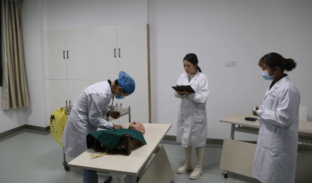 经过激烈角逐,2018级A队获团体一等奖,2019级B队获团体二等奖,2019级A队、2018级B队获团体三等奖,大赛同时决出单项考核奖三项:王沁悦获得心肺复苏术单项奖、袁成获得胃管置入术及导尿术单项奖。刘群在实训中心大数据中心观看了整个竞赛过程。