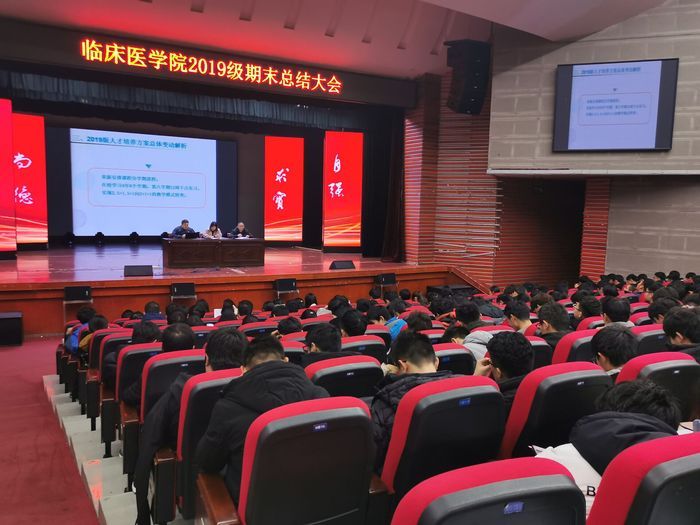随后,宋默涵从临床医学专业培养方案修订思路、人才培养方案修订流程等方面向同学们详细地介绍了《威廉希尔临床医学专业本科人才培养方案(2019版)。康贝贝从 “回顾与收获”、“安全教育”、“考风考纪”、“辅修”、“寒假及开学注意事项”等五个方面工作逐一展开叙述。陶绍晨为同学们详细解读了2020年寒假社会实践活动和老员工创新创业等相关文件。最后,两位辅导员老师鼓励全体,在新的学期要以崭新的面貌、饱满的热情、昂扬的精神气迎接好未来的挑战,并向大家送上了暖心的新年祝福!