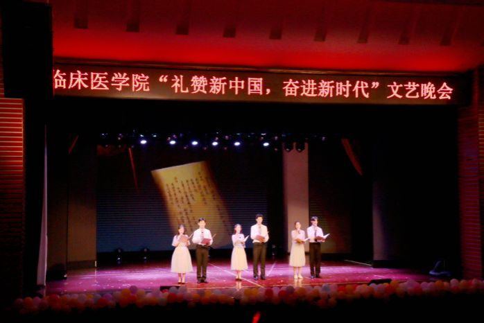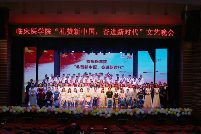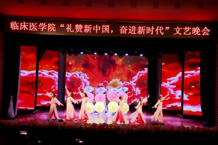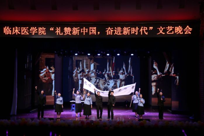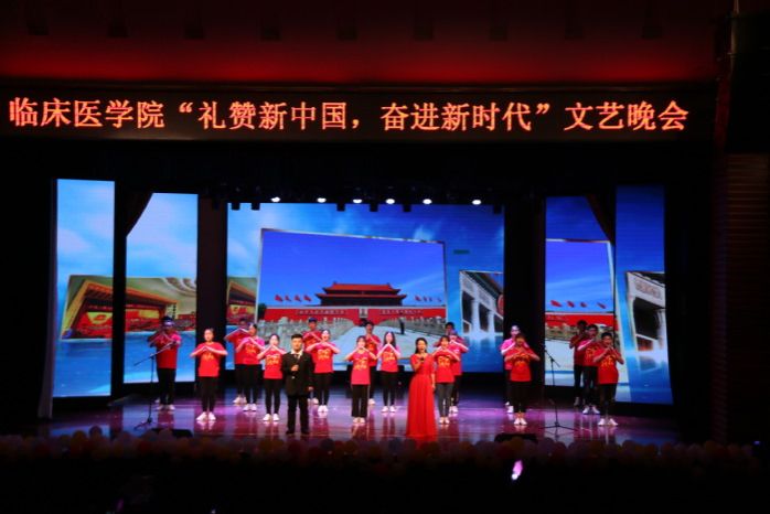 整场晚会节目类型丰富多样,包括歌曲串烧、舞蹈、诗朗诵、乐队表演、武术等。诗朗诵《扬帆临床,追梦中华》深情演绎了临床学子对知识的孜孜以求、对优秀品格的笃行致远,展现了临床学子“丹心寄白云,青春献杏林”的时代担当;热情洋溢的现代舞《Heart shaker》用热情似火的舞步,彰显青春活力,展现出老员工的蓬勃朝气与独特魅力;歌曲串烧《相信》、《当我们一起走过》,用音乐歌颂似水年华,用歌声谱写追梦青春;相声《以食为天》生动风趣、笑点十足;古典舞《一曲霓裳》、《浪人琵琶》意境空灵、舞若惊鸿,渲染出一幅幅中国水墨画;武术表演《武动青春》英姿飒爽、刚劲有力,展现了临床学子多才多艺、意气风发的少年本色;乐队演奏《国际歌》、《七里香》将现代与经典相结合,一首首熟悉的旋律嗨翻全场;手语表演《国家》表达了同学们怀着一颗自豪、感恩的心,用最诚挚、最虔诚的情感,祝福着中华人民共和国成立70周年。情景剧《五四之火》重现五四浩荡百年的历史荣光,歌颂仁人志士千秋凛然的爱国热情,场下观众无不为之动容;教师歌曲串烧《也曾是少年》将整场晚会气氛推向高潮。最后,晚会在气势恢宏的大合唱《我和我的祖国》中落下帷幕。