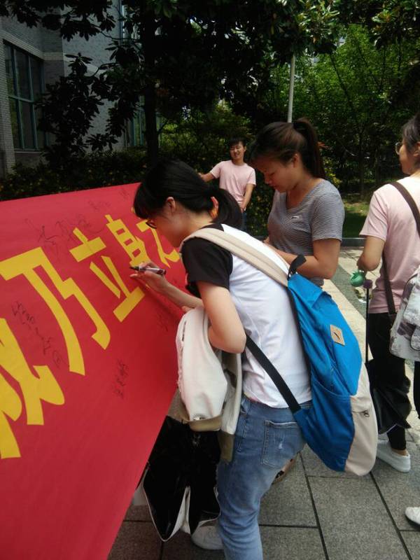 5月24日中午, 2016级团总支在二号教学楼门口开展“诚乃立身之本,信为道德之基础”从我做起之横幅签名活动,同时宣传教育相关知识,签名活动引来广大同学的关注,他们在横幅上庄重的签下自己的名字,并郑重作出“诚信做人、诚信做事”的承诺。