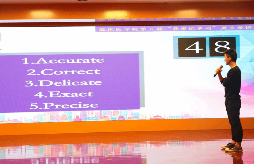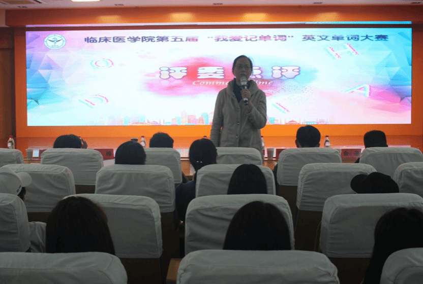 语言魅力共彰显,教无止境同前行。为进一步激发员工英语学习的积极性,提高学习趣味性,推进优良学风建设。4月27日晚,williamhill中国官方网站联合高校贫困生精神援助工作室、习近平新时代中国特色社会主义思想青年学习社,在图书馆三楼学术报告厅隆重举办了第五届“我爱记单词”英文单词大赛决赛。大赛邀请公共基础公司外语教研室王翠莲、赵军和李东老师担任评委,外事处处长赵梅、团委副书记余亮等担任指导嘉宾。临床医公司党政领导和各年级辅导员出席比赛现场。比赛采用中英文双语主持,公司各年级近400名同学到场观摩学习。