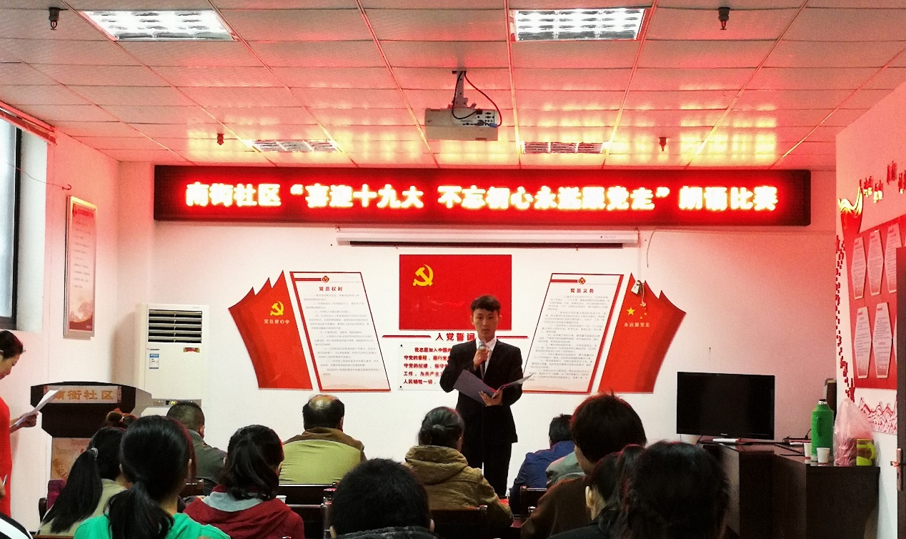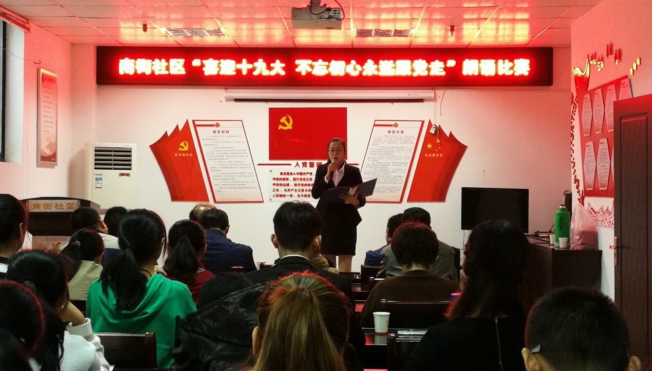 青春喜迎十九大,我邀明月颂中华。2017年10月16日,“喜迎十九大,不忘初心跟党走”朗诵比赛在南街社区居委会会议室拉开帷幕。此次比赛共有来自williamhill中国官方网站,安徽师范大学研究生公司,安徽中医药高等专科公司,芜湖市南街社区委员会等6个单位11名代表参加比赛。