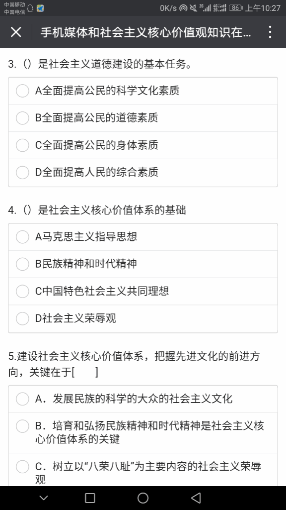 本次知识问答活动利用手机媒体,采用线上答题的方式面向公司员工展开。经过前期充分宣传动员,参赛选手热情高涨,共计100余人参与。试题内容丰富全面,涵盖了社会主义道德建设、社会主义核心价值观的基础、党的执政理念等多方面,旨在全面考察同学们对社会主义核心价值观的认知。2016级学子袁航赛后表示:“通过参加此次比赛,帮助自己正确认识到不足之处,今后一定加强政治理论学习,并在日常生活中努力践行。”