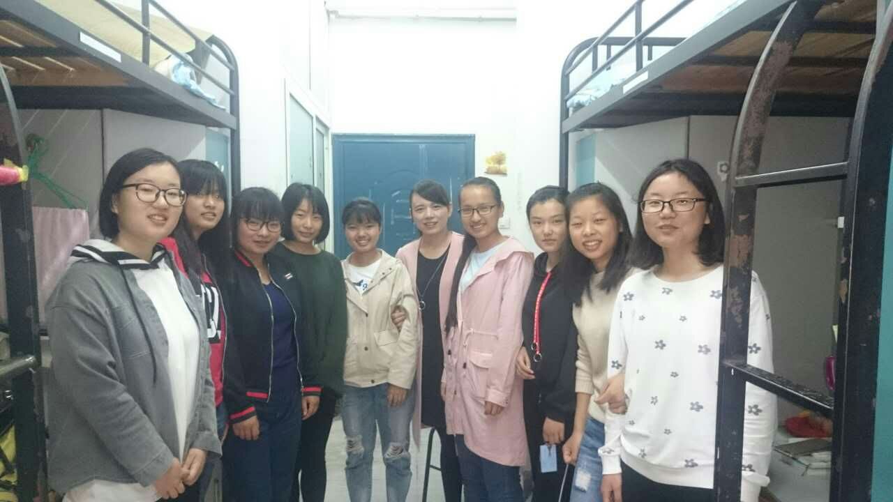 李海莉与留校女生合影
