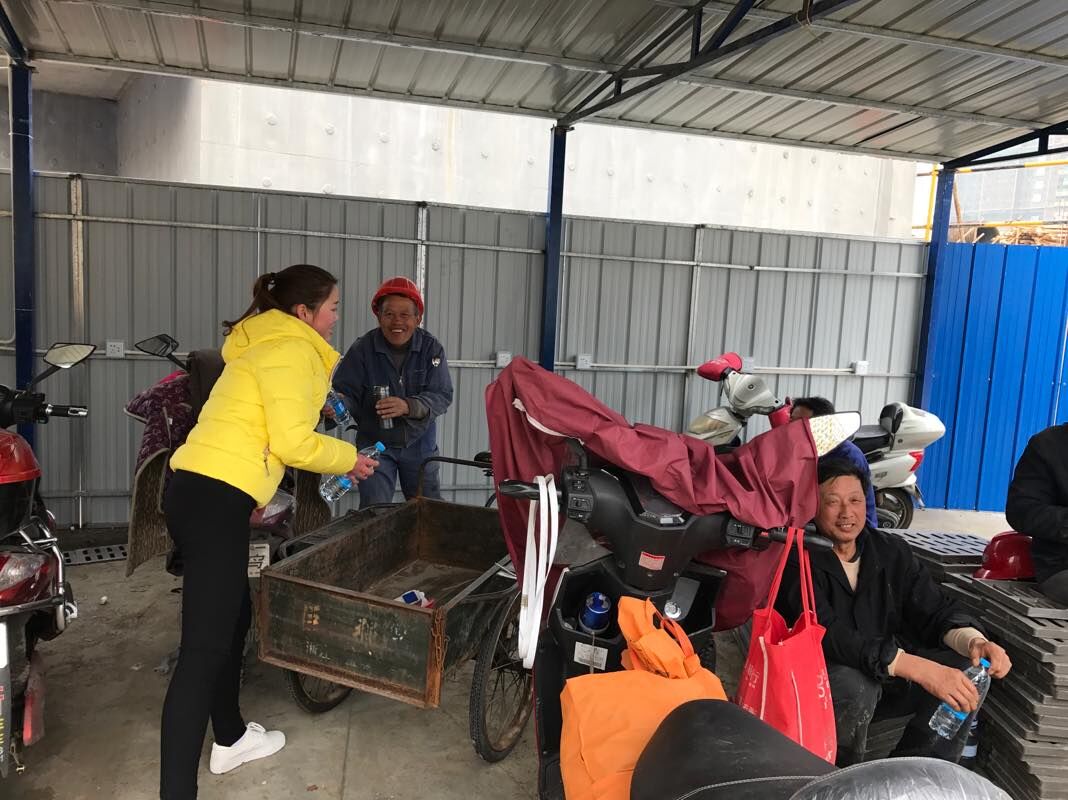 3月5日,全科班同学来到了公司附近建筑工地的工人休息区,为吃苦耐劳、勤勤恳恳的“城市建设者”们递送矿泉水,宣讲常用急救知识。针对一些常年在外打工,又不熟悉新媒体使用方法的年长工人,同学们还拿起手机教他们用微信与家人视频聊天。和煦的阳光下,同学们和工人们坐在一起愉快地交谈,爽朗的笑声中,透出暖暖的人情味,朴素而又温暖。