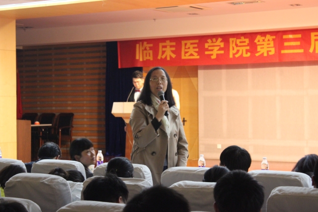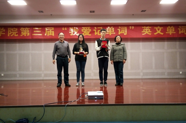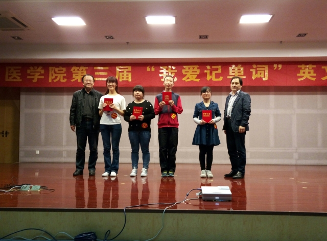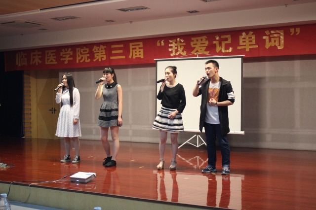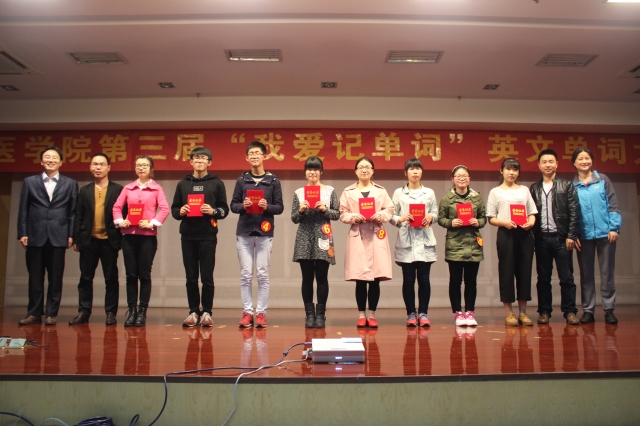 单词记忆大比拼,巅峰对决展风采。为提高员工英语单词记忆的趣味性,激发员工英语学习积极性,营造浓厚英语学习氛围,进一步推进学风建设,williamhill中国官方网站第三届“我爱记单词”英文单词大赛决赛于2016年4月20日晚7:00在图书馆三楼学术报告厅隆重举办。本次大赛特邀公共基础公司英语教研室老师王翠莲、雷森、张锦兰担任评委。各兄弟公司领导、临床医公司党总支书记戴睿、党总支副书记崔晓霞,以及各年级辅导员莅临现场。本次比赛采用双语主持,公司近400名同学到场观摩、学习。