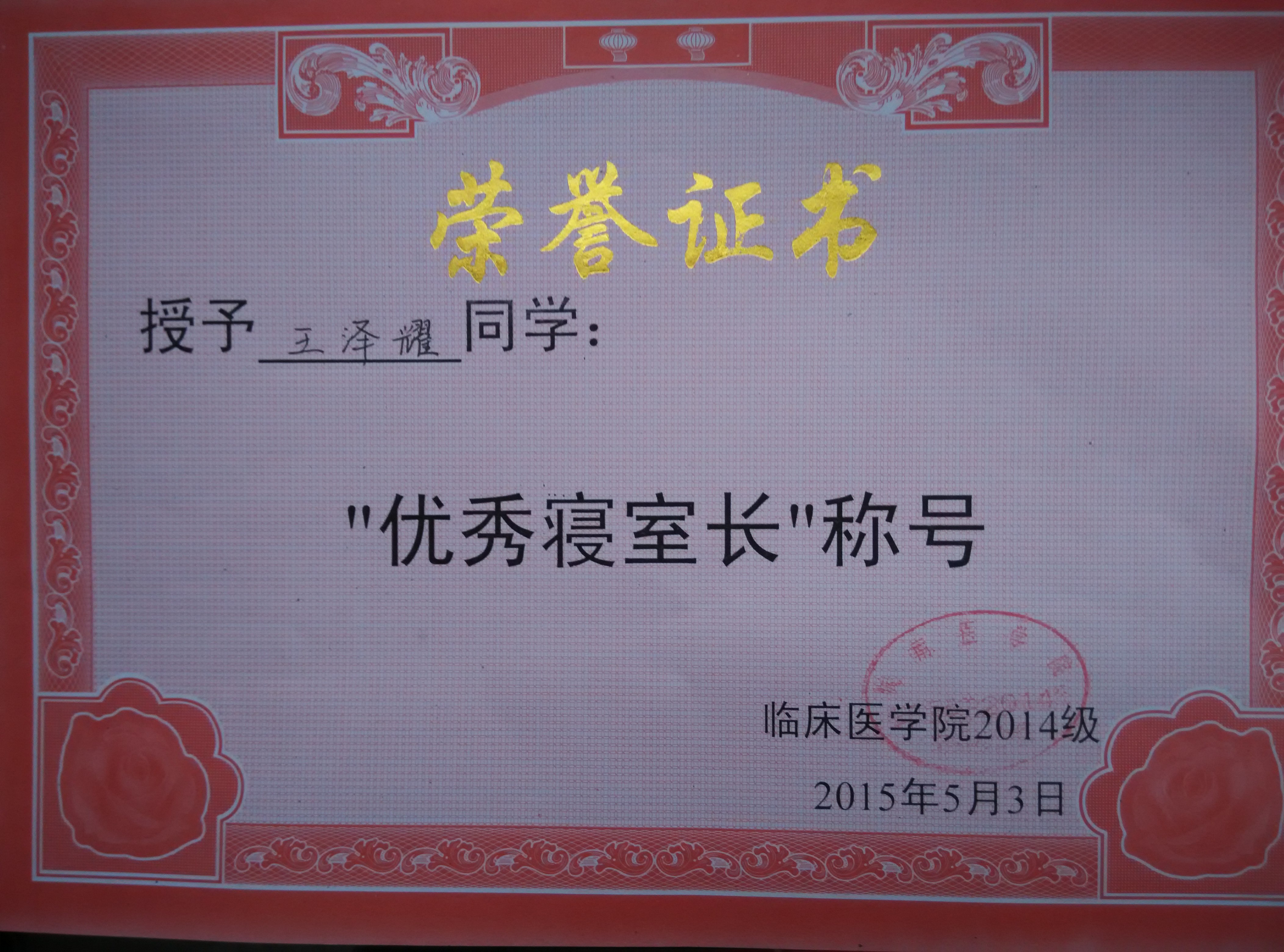优秀寝室长