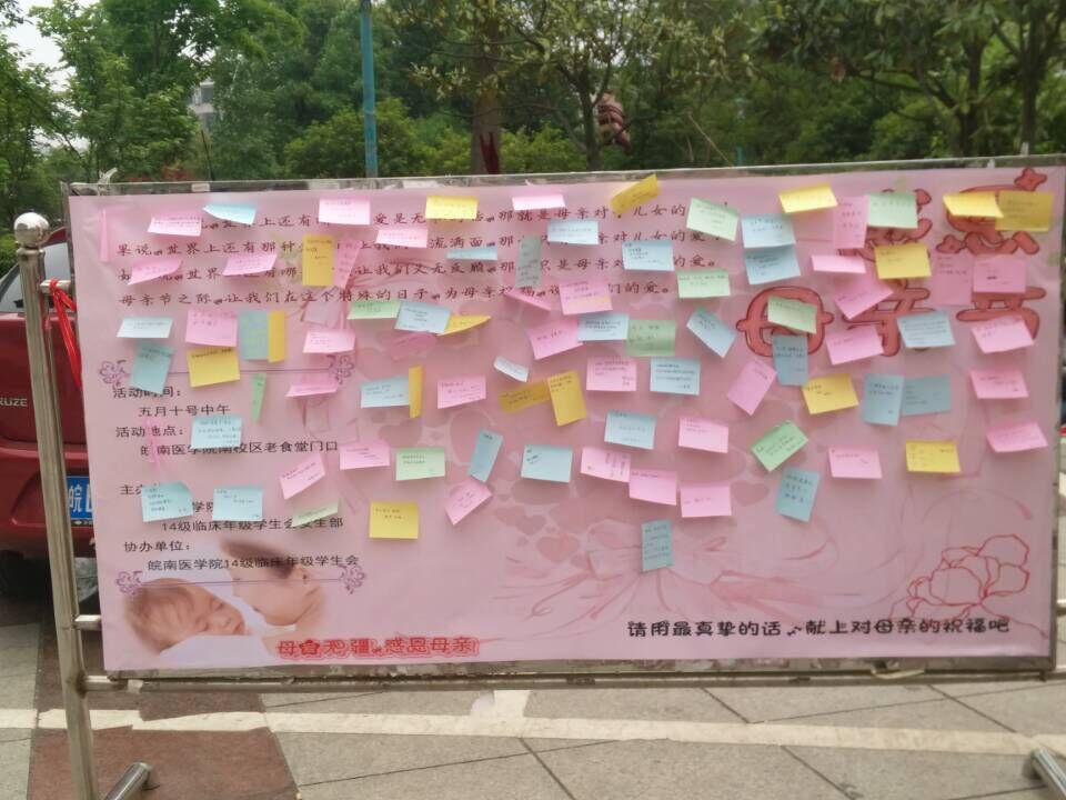 丝丝白发儿女债,道道深纹岁月痕。伴随着《妈妈我爱你》和《鲁冰花》歌声,同学们首先在“妈妈我永远爱您,谢谢您为我做的一切”横幅上签下自己的名字以铭记母爱。随后通过“情系便利贴”写下自己的心声:“希望时光慢点走,别让我那么快长大,别让您那么快变老”、“母亲您是太阳花,时刻照耀咱的家,有您的呵护传佳话,白天黑夜都不怕”、“妈妈我好想您,暑假一定好好学做菜,帮您分担家务,让您吃上我做的一桌子菜”等表达了对母亲的祝福和感恩。每个母亲都是天使,分娩时经受住声嘶力竭的痛,养儿育女时受着焦心劳思的累,年迈时受着形影相吊的苦,做儿女的一辈子也报答不完伟大的母爱。