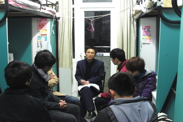正值期末考试,为深入了解同学们的考前心理状态,加强师生之间的交流,医学一系2009级辅导员深入员工寝室,与员工召开了一次别开生面的座谈会。 12月15日晚八点,辅导员邓根飞老师来到宿舍。首先,邓老师仔细询问了同学们的迎考心理状态和复习进度,同学们踊跃发言,互相讨论备考期间遇到的心理问题,就近期的思想、学习、生活等方面情况向老师做了汇报。邓老师仔细聆听,鼓励同学们树立信心,正视考试,天气渐寒,学习的同时注意保暖,保证身心健康。此外,邓老师还进行了冬季用电安全知识的宣传,面对老师的谆谆教导,同学们认真倾听,整个座谈会在一片温馨、祥和的氛围中进行。