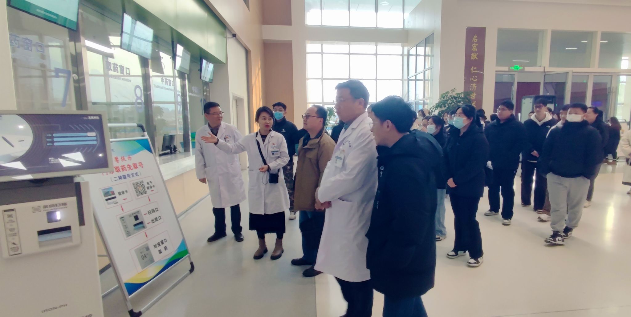 洽谈会后,青阳县人民医公司党委书记王晓为、经理丁江水、副经理徐良斌带领师生实地参观了医院新院区门诊大楼、住院部等相关诊疗设施和环境。通过实地参观走访,同学们对医院干净舒适的医疗环境、先进的硬件设施、积极向上的医院文化有了更直观认识。