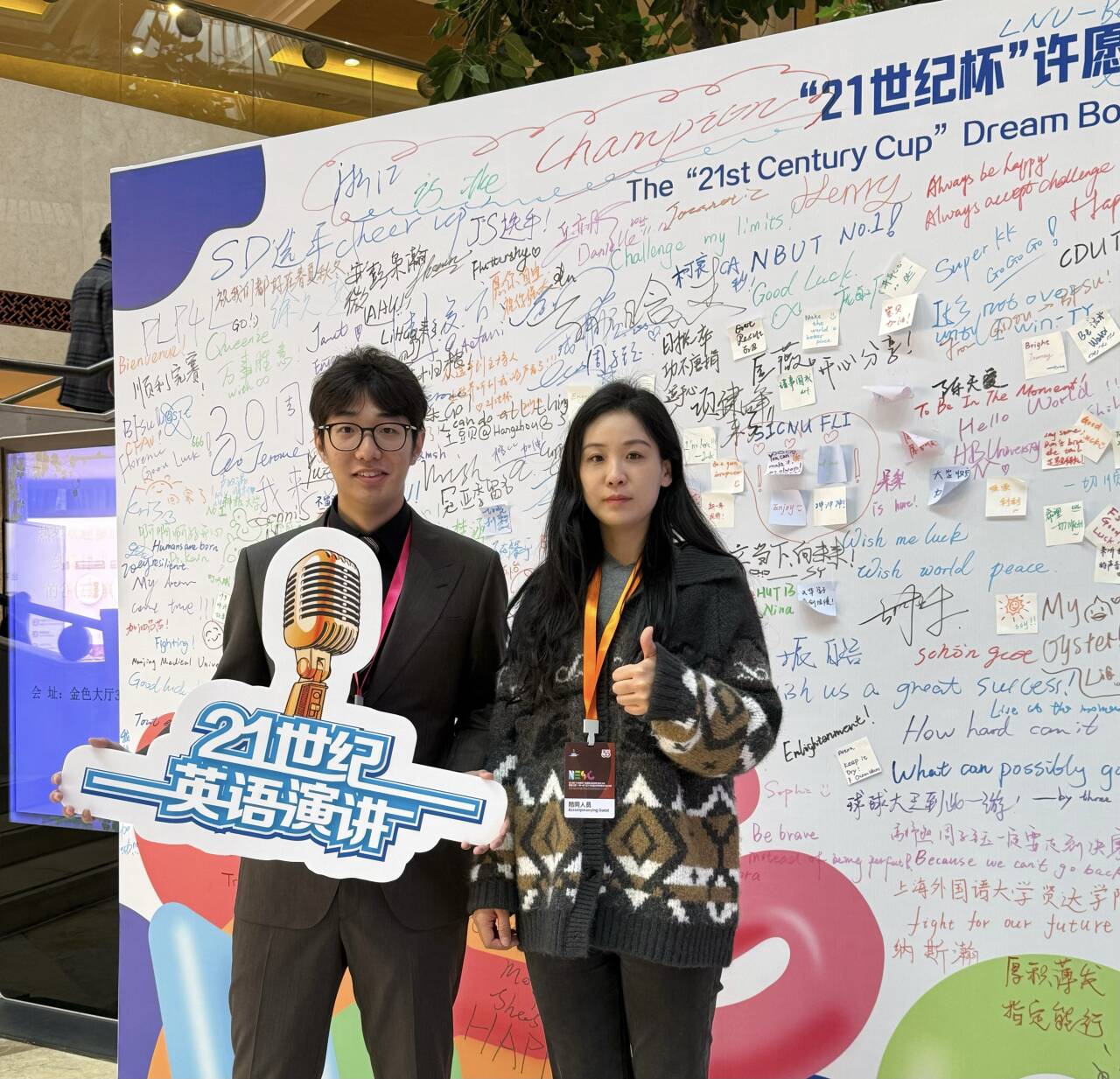 11月13日至17日,第30届中国日报社“21世纪杯”全国英语演讲比赛全国总决赛在浙江杭州举行,公司学子首次获得该项赛事全国总决赛的参赛资格。2023级学子刘启航与来自全国各高校的350余名优秀选手同台竞技,凭借扎实的语言功底与出色的临场表现,最终获全国总决赛大学组三等奖,刷新了公司在该赛事中的历史最佳成绩。