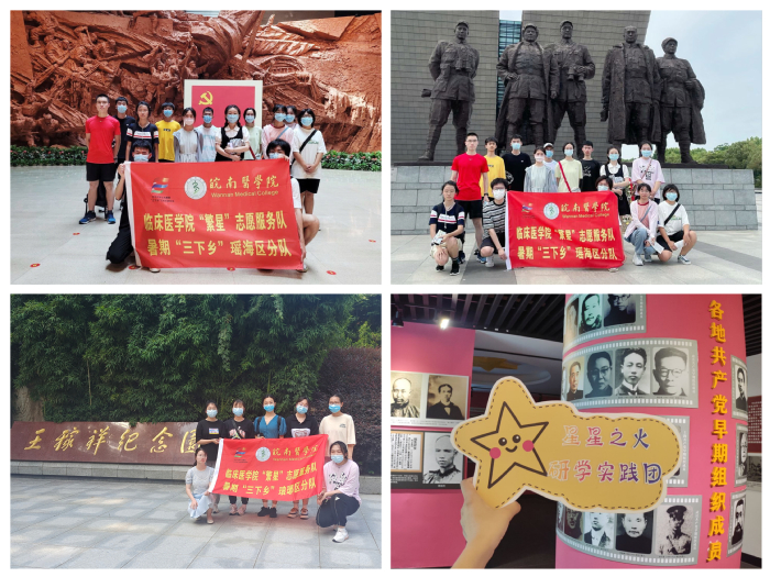 为弘扬“奉献、友爱、互助、进步”的志愿服务精神,增强青年学子的社会责任感、奉献意识和实践能力,“星星之火”研学实践团成员在多地开展义诊、导诊等志愿服务。志愿者们在阜阳市临泉县第一人民医院南院、亳州市利辛县人民医院等地开展导诊活动,为患者热心提供帮助,耐心解答问题,熟练引导患者就诊;在滁州市光荣院联合当地医院为老兵提供上门义诊服务,为老兵建立健康档案、提供常规体检服务;在新疆维吾尔自治区和田市金川苑小区开展健康义诊,为社区居民提供测量血压、测量血糖和健康知识咨询等服务。