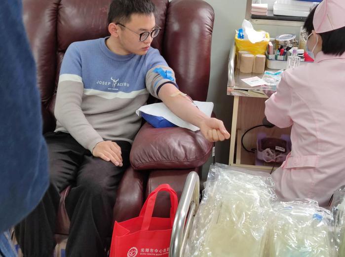 疫情防控常态化期间,为接力保障芜湖市血液供应,3月11日,“春芽”志愿服务队与芜湖市中心血站联系,组织开展无偿献血活动。在员工党员的带头下,志愿者们纷纷响应,他们严格按照疫情防控要求,戴好防护口罩,做好自我防护,并在市中心血站工作人员的指导下,依次接受体温检测、血压测量和健康征询。志愿者们撸起袖子、绑上压脉带,随着医护人员将针头扎入,殷红的鲜血缓缓注入血袋时,雷锋精神也在继续向前传递。