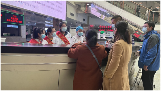 11月28日清晨,志愿者们身着工作服、佩戴志愿者绶带,迎着朝阳以饱满的热情来到弋矶山医院门诊部,在医院工作人员的带领指导下,在各自岗位上为患者进行导医、导诊、导检、健康咨询等服务工作。短短的三个小时内,志愿者们共为约三百名患者进行了咨询服务。活动中,志愿者们热情接待、细心问候,帮助患者解决实际问题,用实际行动践行了“奉献、友爱、互助、进步”的志愿服务精神。本次活动也帮助同学们了解了自己即将从事的职业,明确了医员工的使命和担当。